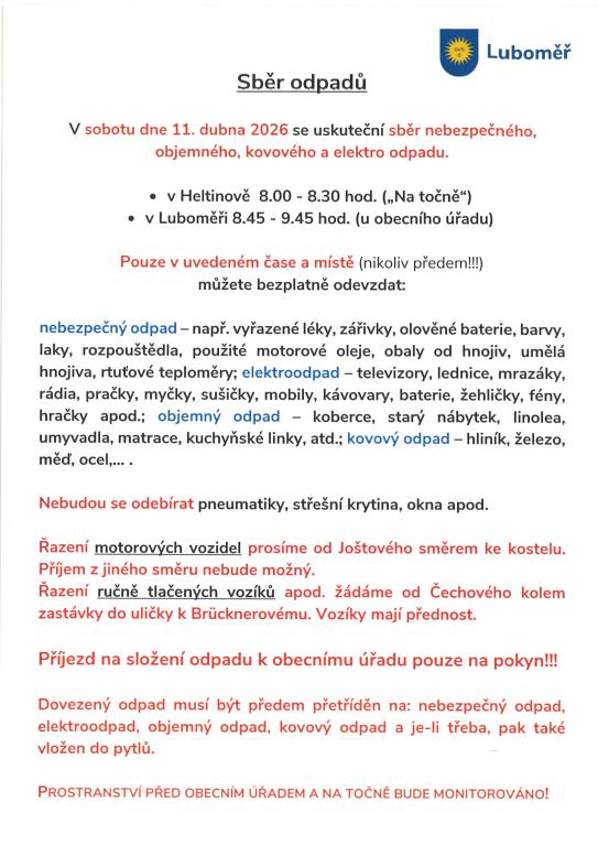 Obecní úřad Luboměř informuje občany o splatnosti místních poplatků pro rok 2026.