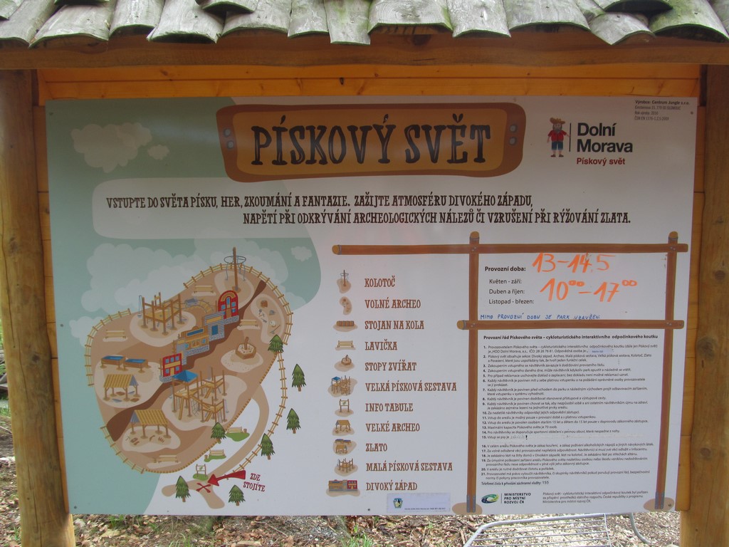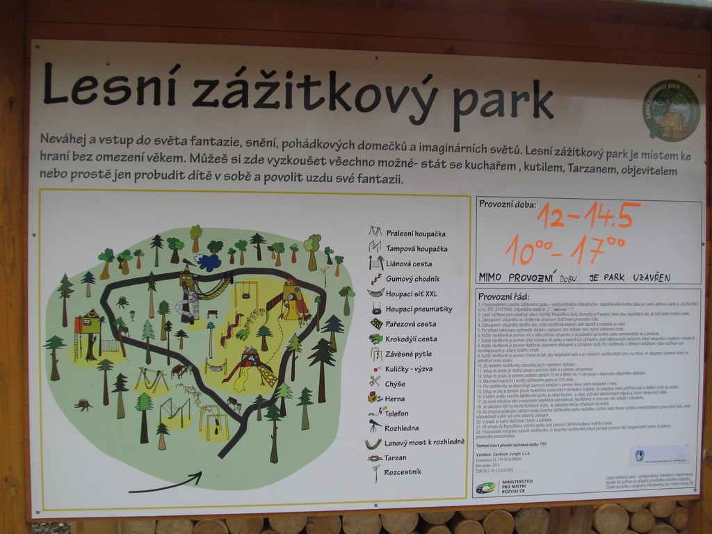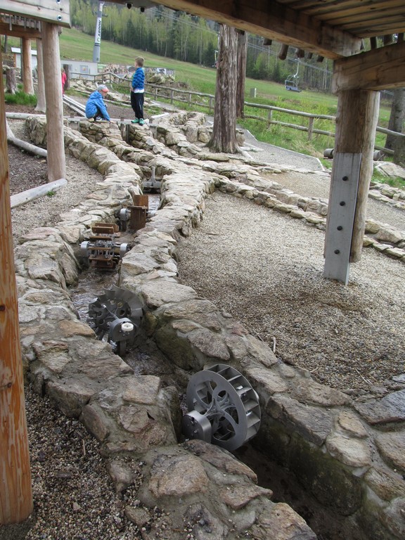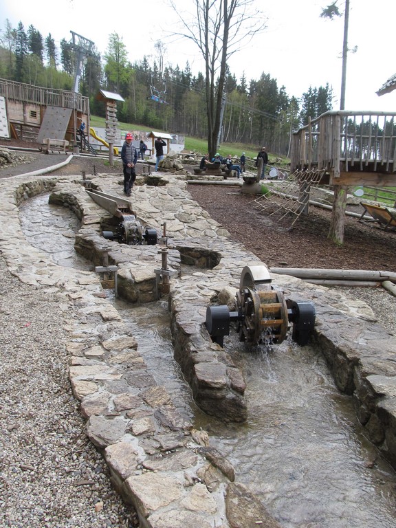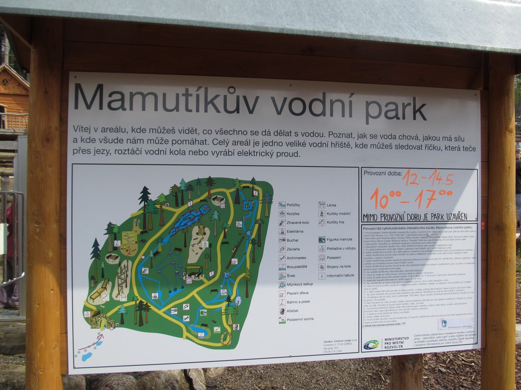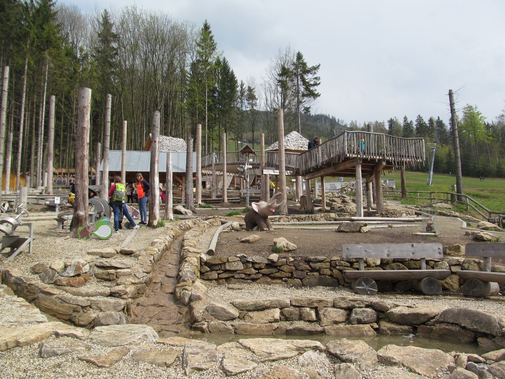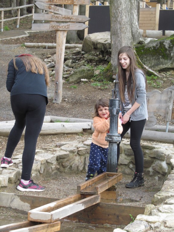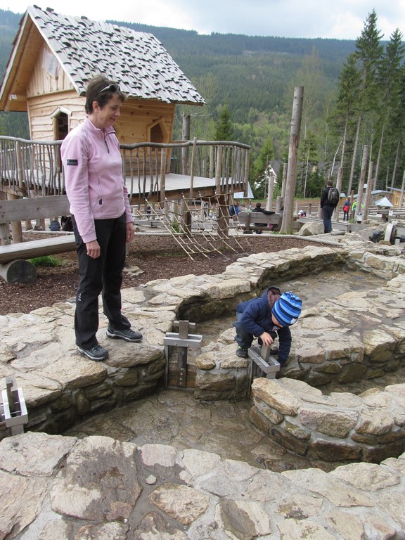 Poté jsme navštívili úplný ráj pro děti: Mamutíkův vodní park, kde si děti i dospělí mohli vyzkoušet spoustu interaktivních prvků, které regulovaly vodu přitékající z různých potůčků a náhonů; Lesní zážitkový park, ve kterém jsme např. navštívili chýši pro malé kutily a řemeslníky, vyzkoušeli různé houpačky a bludiště; a v neposlední řadě i Pískový park, kde se nejvíce vyřádili ti nejmenší, mohli se vžít do role archeologů, vyzkoušet si rýžování zlata, či přemisťování písku pomocí pískového dopravníku a vlaku. vedoucí klubu Pátek Iva Šmatelková