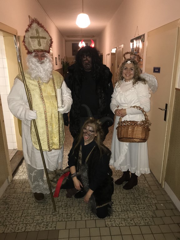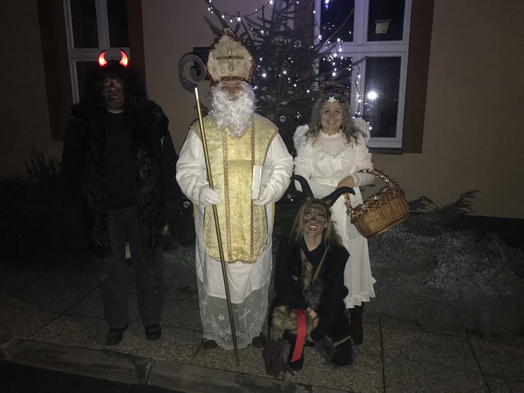 Po vsi chodil opět Mikuláš s čerty a andělem, který hodným dětem naděloval za písničku či básničku různé dárky. Družinu po vsi vozilo mikulášské spřežení.