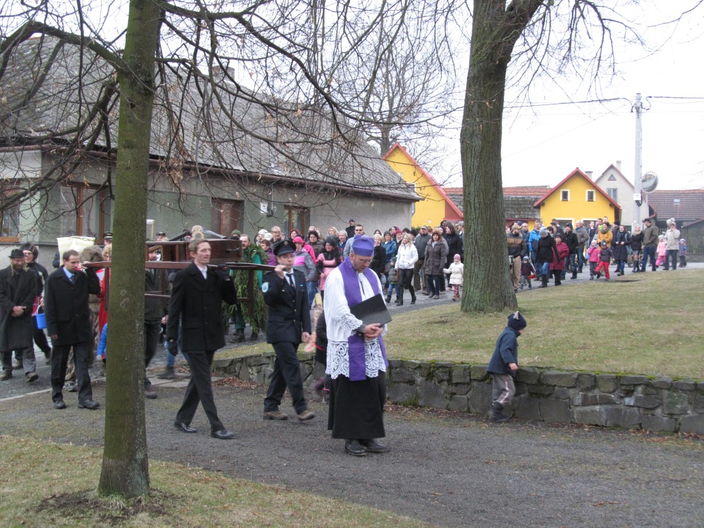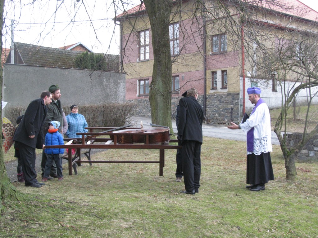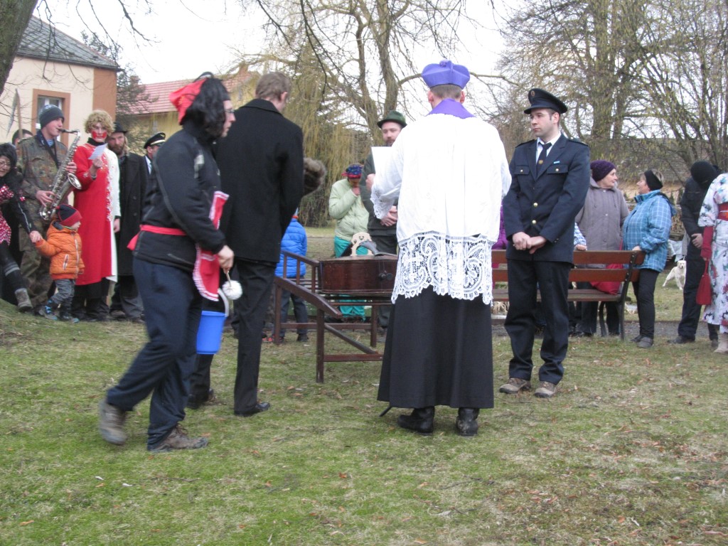 Netradičně již odpoledne u obecního rybníku se mohli „drazí pozůstalí“ rozloučit s basou na její poslední cestě. Smuteční řeč v podání „kněze“ Pavla Květoně jistě všechny smuteční hosty pobavila. Velká účast. Následovalo pohoštění masek na zdejším obecním úřadě.