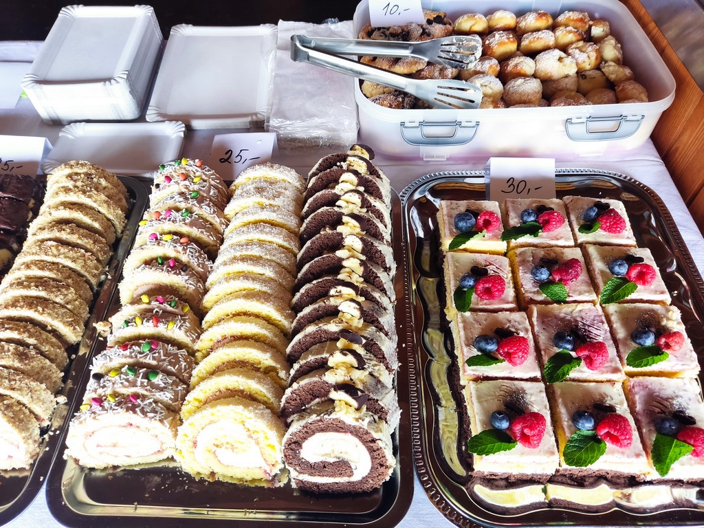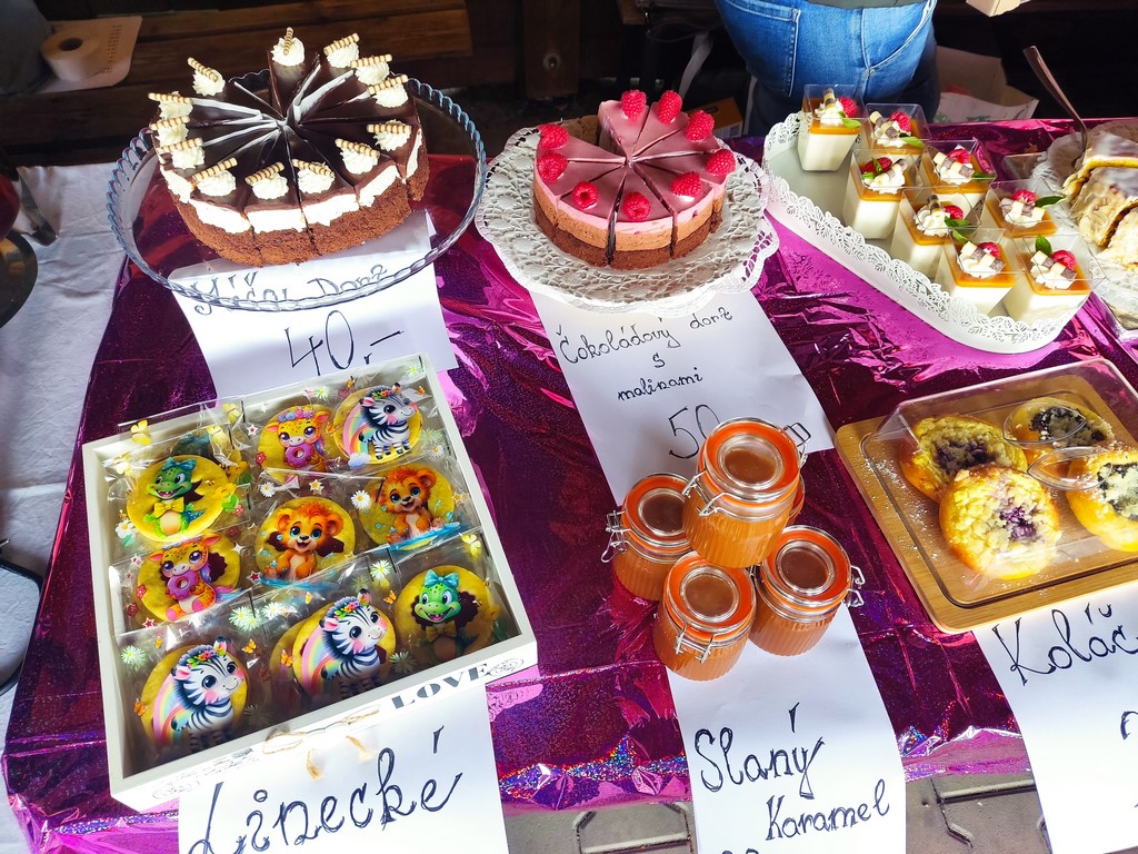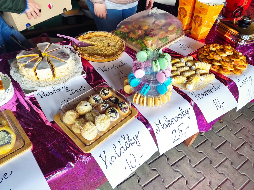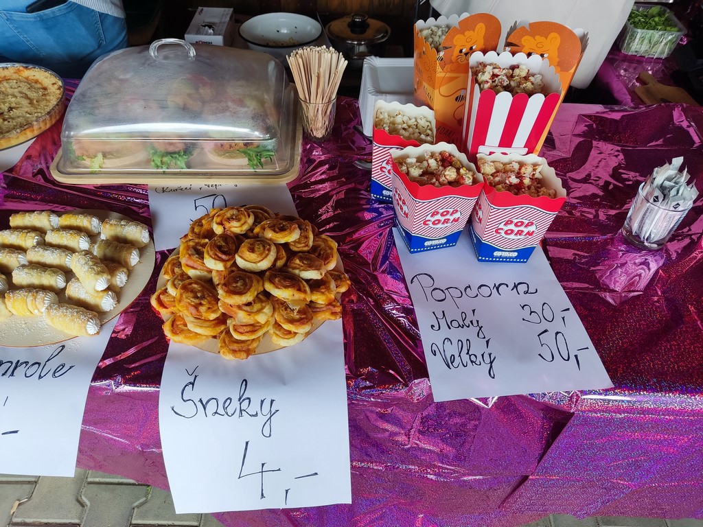 Letošní nabídka byla opět široká - zelná polévka, mini pizza, hamburgery, trhané maso, řízek, marmelády, kečupy, chutney, pribiňáčky, sýry, bramboráčky, topinky, tatarák, všemožné dortíky, řezy, zákusky a jiné sladkosti, palačinky, popcorn, vrstvený salát, odpolední kafíčko, punč, svařák a ostatní pitný režim.