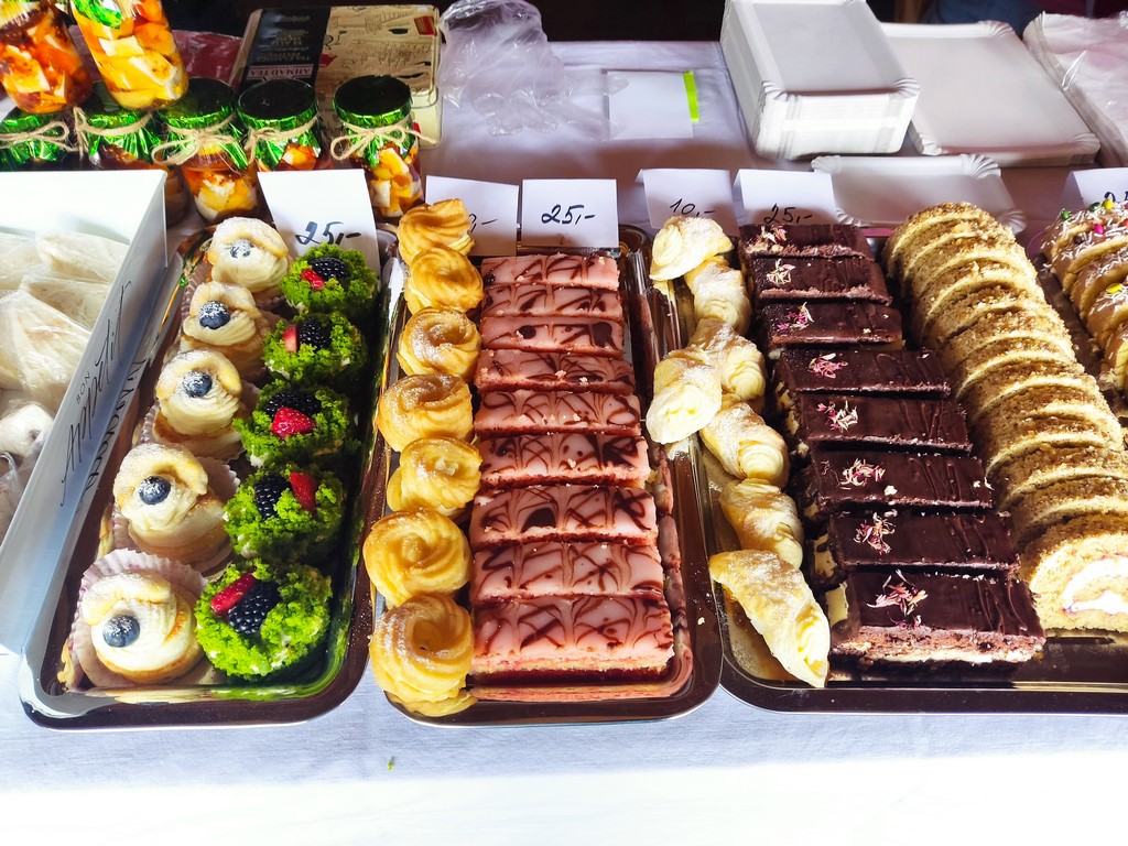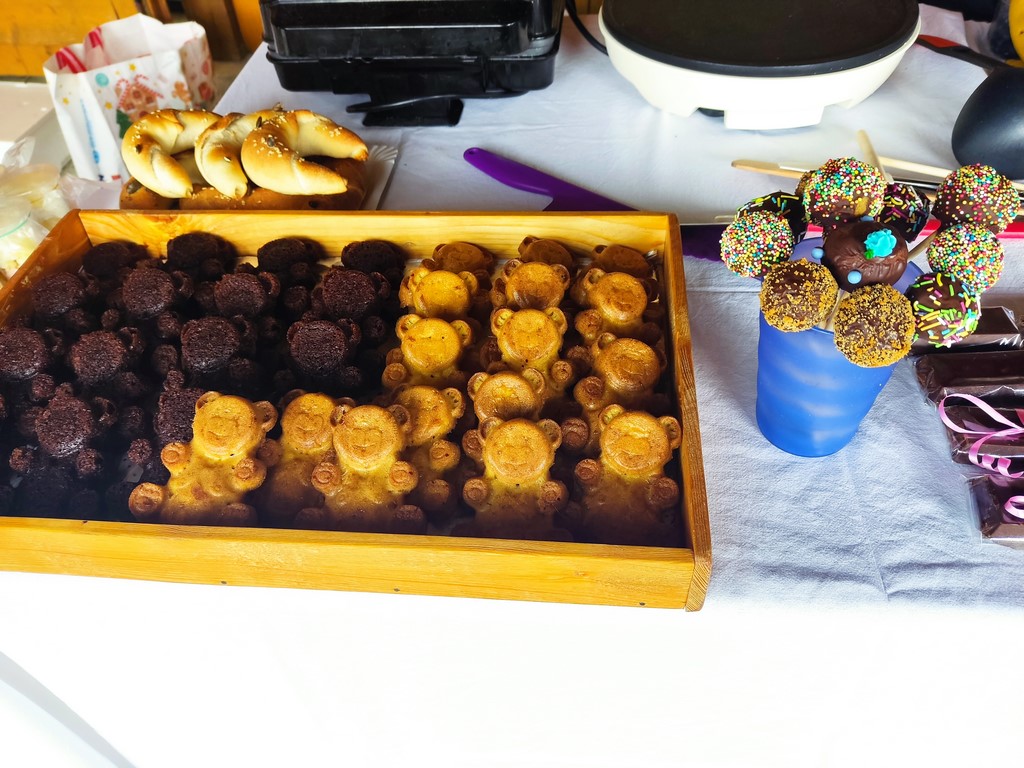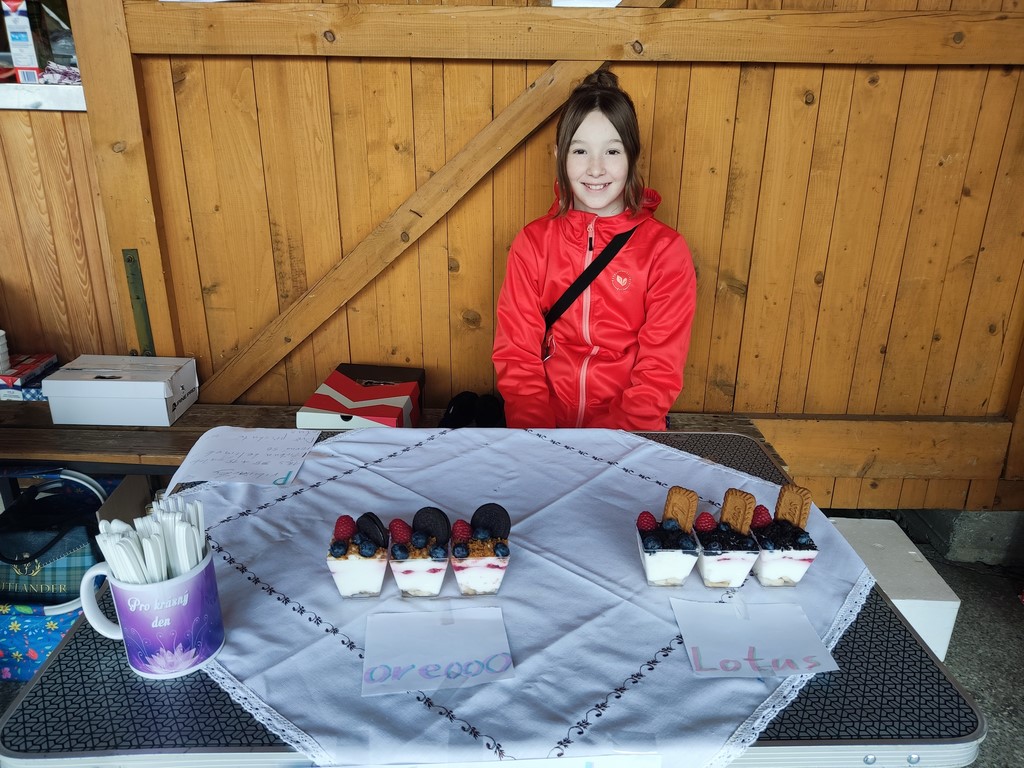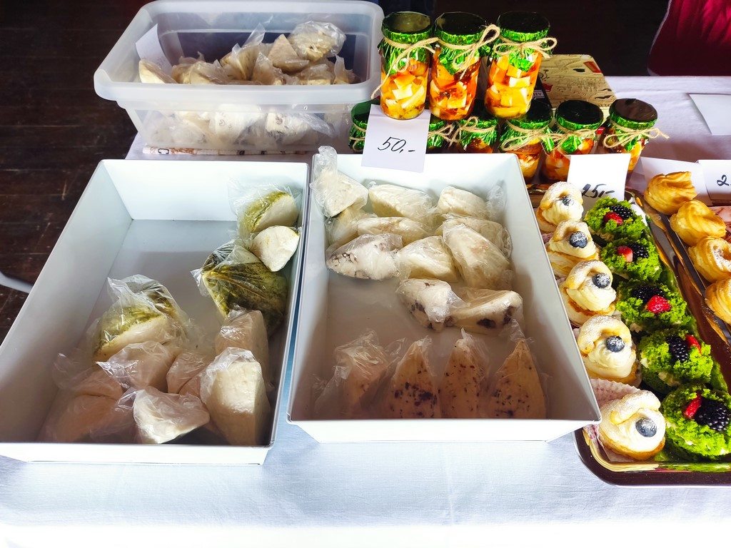 Letošní nabídka byla opět široká - zelná polévka, mini pizza, hamburgery, trhané maso, řízek, marmelády, kečupy, chutney, pribiňáčky, sýry, bramboráčky, topinky, tatarák, všemožné dortíky, řezy, zákusky a jiné sladkosti, palačinky, popcorn, vrstvený salát, odpolední kafíčko, punč, svařák a ostatní pitný režim.