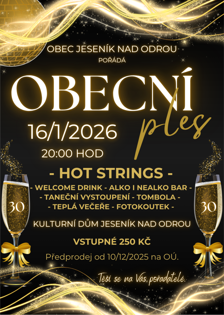 Vážení občané, příznivci tance, hudby a zábavy, srdečně Vás zveme na jubilejní 30. OBECNÍ PLES.