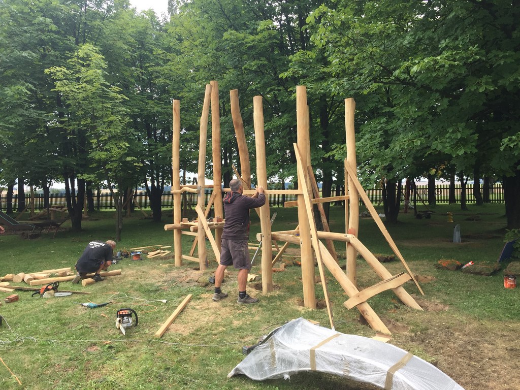 Rozmístění jednotlivých herních prvků bylo navrženo tak, aby nedošlo při jejich montáži k jakémukoliv poškození stávající výsadby stromů. Nové hřiště by mělo „splynout“ se stávající vzrostlou zelení. Navíc nepravidelný a přírodní vzhled akátové kulatiny odpovídá celkovému přírodnímu konceptu areálu „Na drahách“ a nenaruší tak jeho vzhled. Herní prvky byly navrženy s max. výškou pádu do 1 m. Za dopadovou plochu byl zvolen stávající trávník, popř. drobné kamínky (tzv. kačírek).